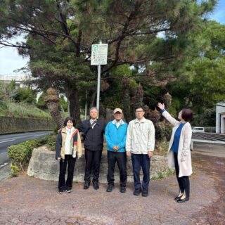 10:40分 「西原運動公園」(海抜54メートル)目指して事務所を出発 → 県道38号線道路沿いを歩く →